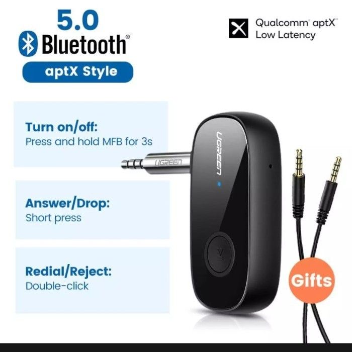 Ugreen Bluetooth 5.0 receiver AptX audio aux Low Latency 3.5mm BT5. 0