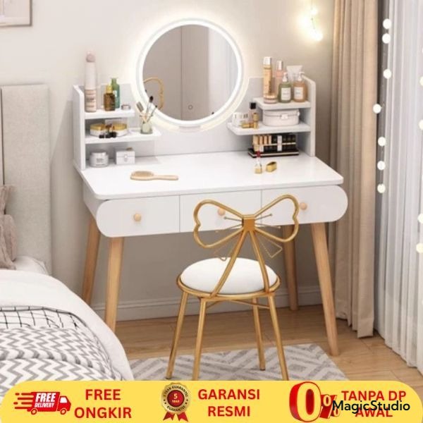 [TOP SELLER] MEJA RIAS SET KURSI PITA / MEJA RIAS LAMPU LED/MEJA RIAS AESTHETIC/MINIMALIS (GARANSI RESMI)