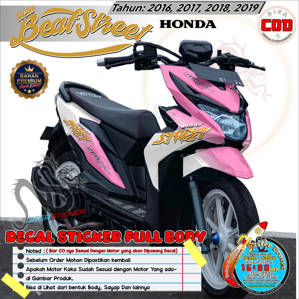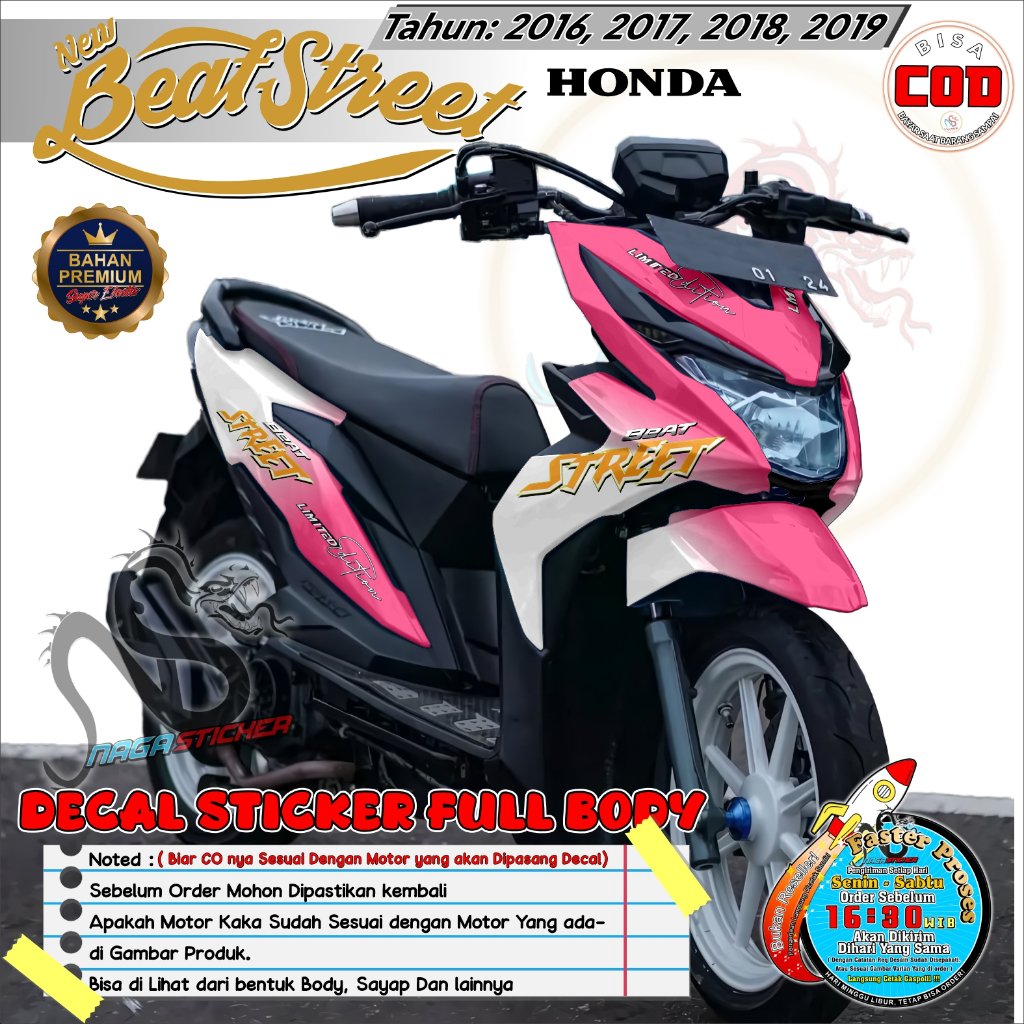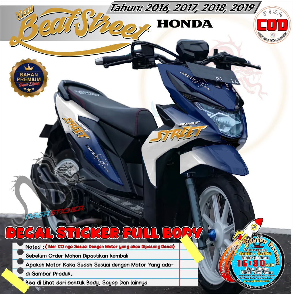 Decal Sticker Full Body Honda Beat Street 2016 2017 2018 2019 Motif 2Warna NS3522 Desain Bisa Custom
