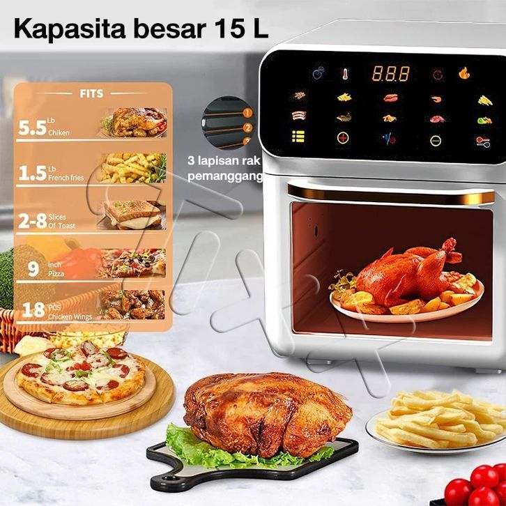 TIXX Air Fryer 9L Low Watt 800 W Oven Touch Screen Multifungsi Tanpa Minyak Untuk Goreng Panggang