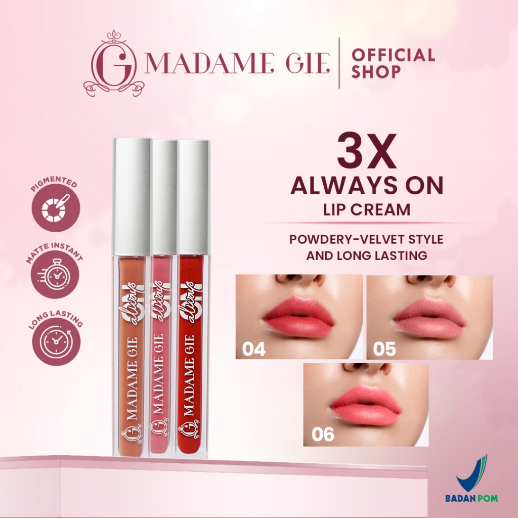 DAPAT 3 Madame Gie Always On Long Wearing Lip Cream - MakeUp Lip Cream Lipstik