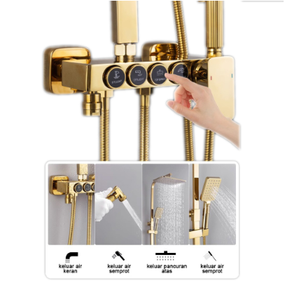 Kuningan Shower Kamar Mandi 4 in 1 Persegi Panas-Dingin Dengan Faucet Set pancuran lengkap SUS 304 Gol