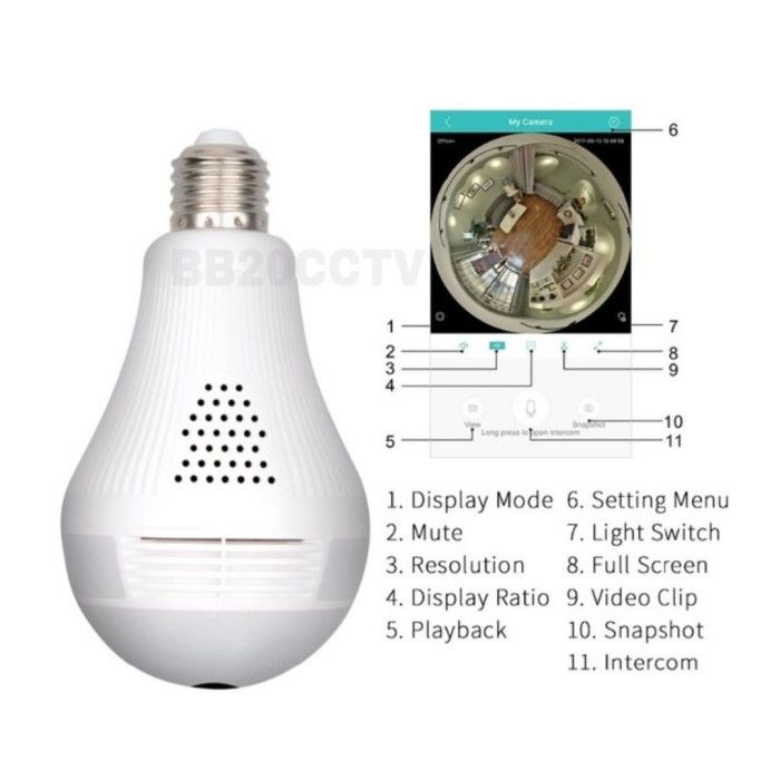 KAMERA CCTV LAMPU IP WIRELESS PANORAMA FISHEYE 360 BULB 2 MP ICSEE