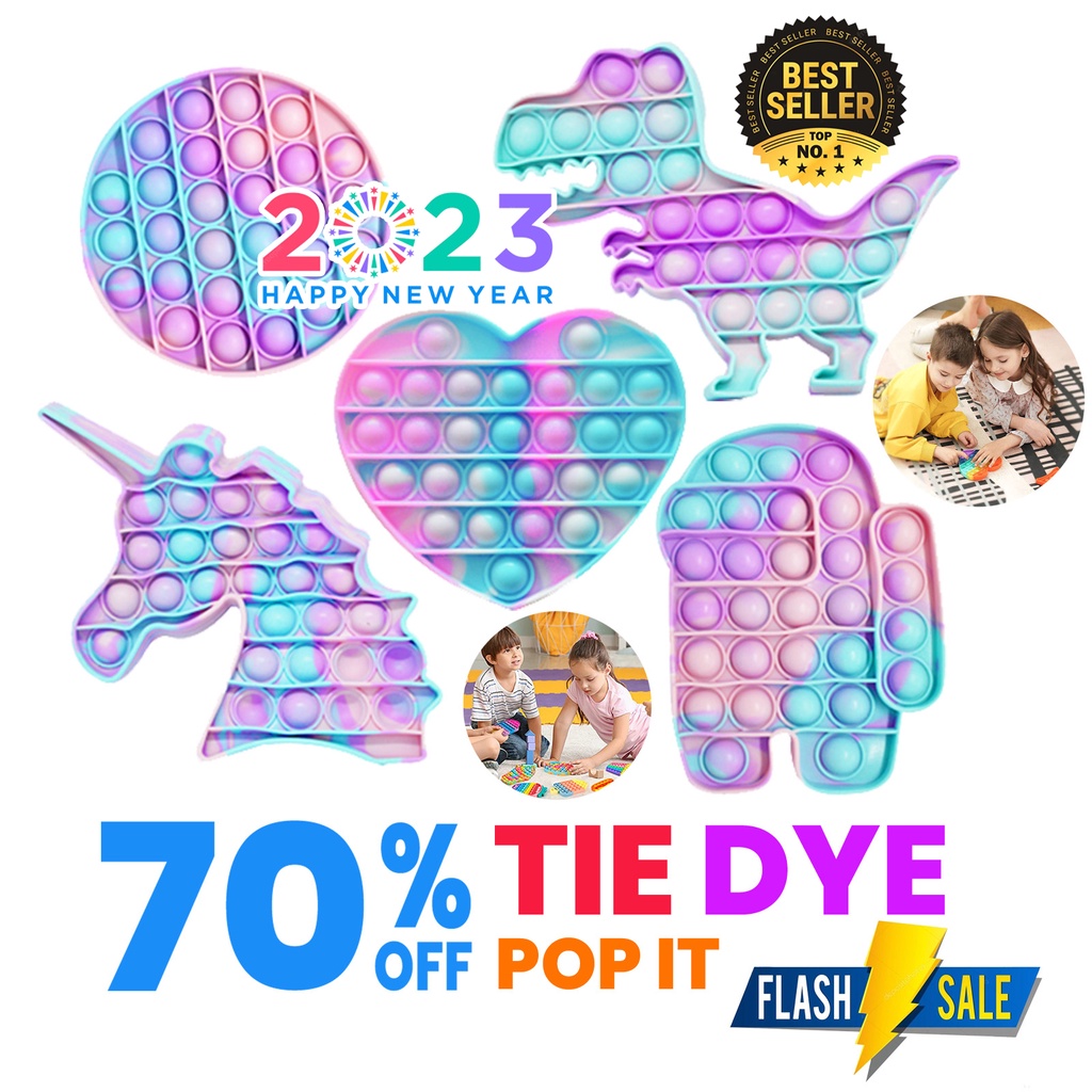 Ice Town Pop It Tie Dye Rainbow Squishy Slime Edukasi Anak Push Multicolor Fidget Toys Bubble