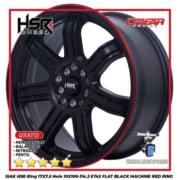 VELG PELEK HSR WHEEL SIAK R17 LUBANG 5 ET42 FLAT BLACK MACHINE RED RING BUAT ALTIS NEW IMPREZA FT86 DLL GRATIS ONGKIR