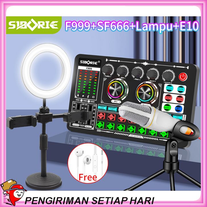 Agen Store F999+SF666+E10+Lampu Paket lengkap Soundcard Microphone Headphone Light SET Satu set dudukan lengkap