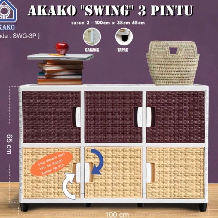 FREE ONGKIR AKAKO - Lemari Akako Swing 3 Pintu Susun 2 3 4 5 Motif Rotan Kuat Tahan Lama Multi colour TERLARIS