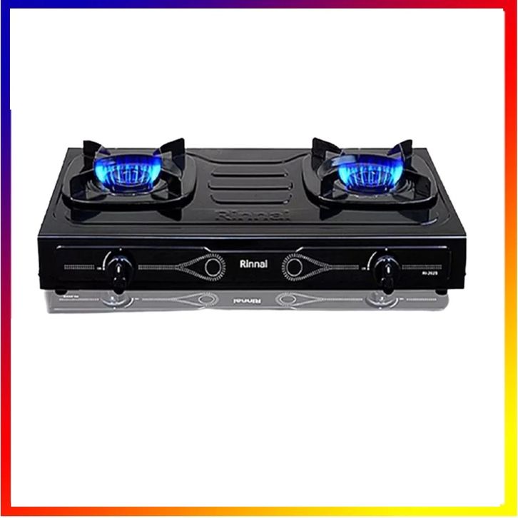 Kompor Gas 2 Tungku RINNAI RI 202S+Selang Gas+regulator Meter Bahan Sangat Kuat Hitam Teflon