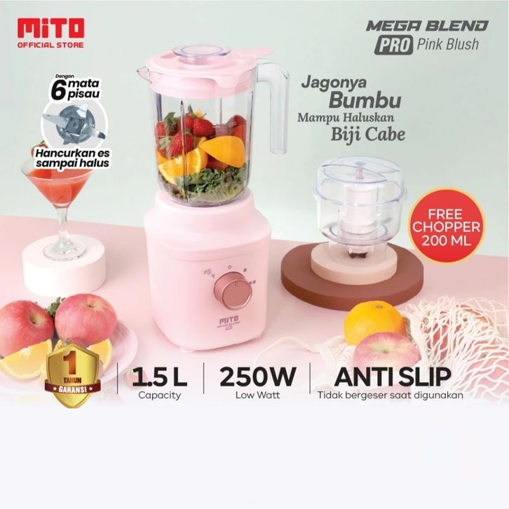 MITO MEGA BLEND PRO BL300 - 1,5L Jar 2 Tingkat Kecepatan + Pulse + 6 Mata Pisau dengan Ice Crusher