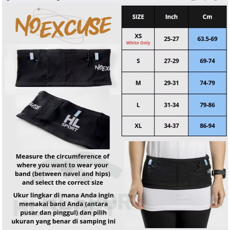 TERLARIS HLSport No Excuse Running Band Waist Running Bag Belt Lari Tas Pinggang Anti Goyang Sabuk lari High Elastiscit