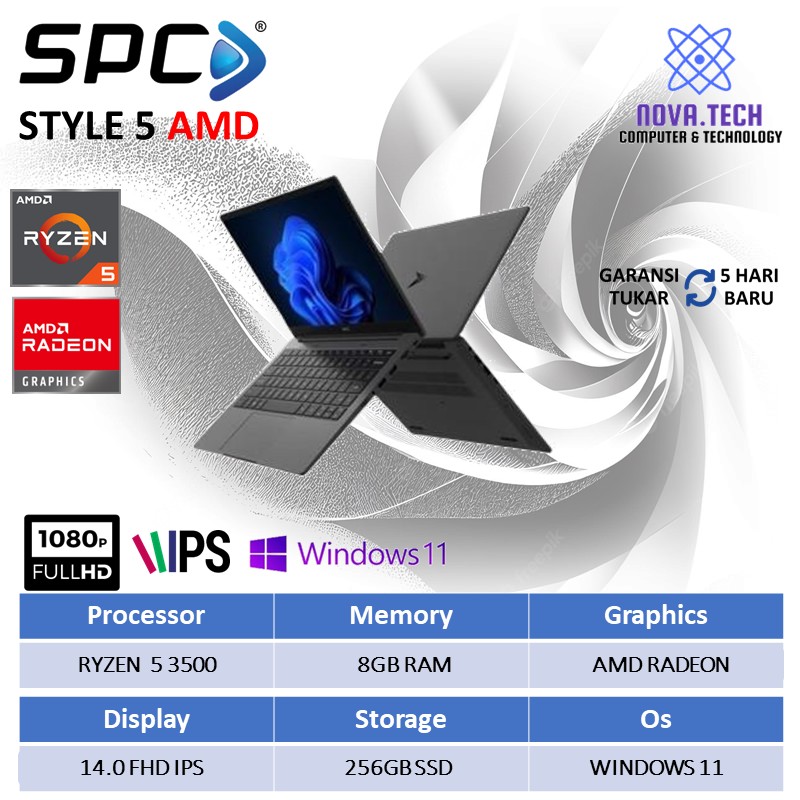 SPC Style 5 AMD Ryzen 5 3500 Ram 8Gb 256Gb Ssd Layar 14.0 fhd ips