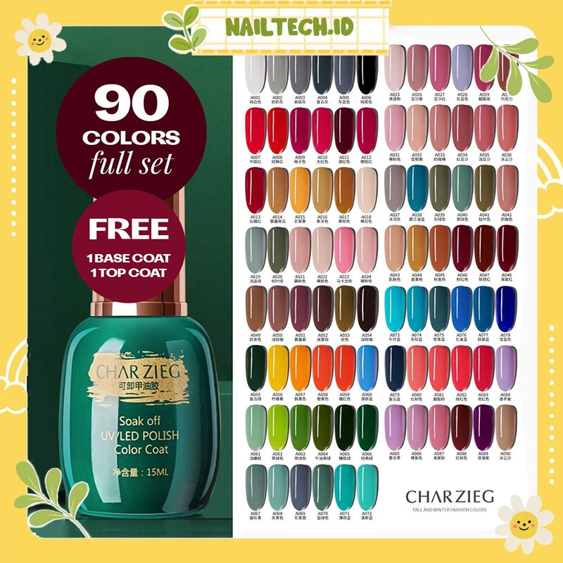 CHARZIEG Full Set 1-90 Colors UV Nail Polish Charzieg 15ml Warna
