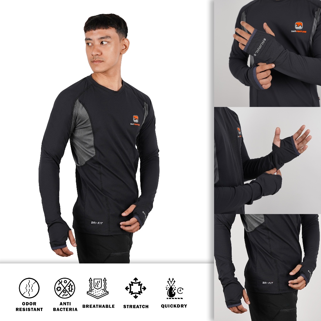 Zarventure Aural Kaos Baselayer Lengan Panjang Olahraga Outdoor Running Sports Dry Fit Manset