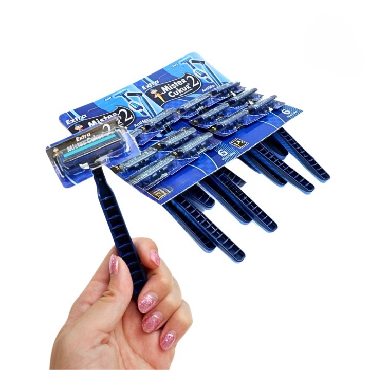 PROMO 1 LEMBAR ISI 6 PCS Mister Cukur 2 Mata Pisau Cukuran Kumis Jenggot Men Disposable Razor