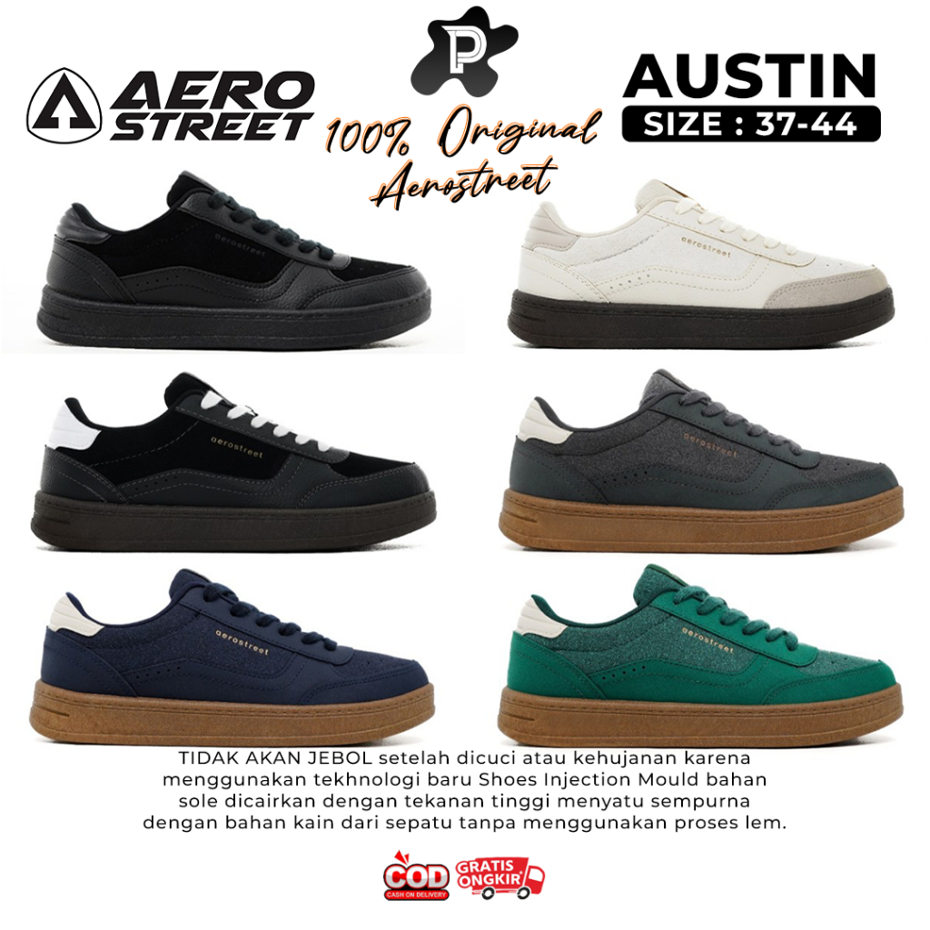 Aerostreet 37-44 Austin All Black / Coklat Tua Hitam / Coklat Tua Natural / Coklat Gum Biru Tua / Coklat Gum Abu Tua / Coklat Gum Hijau Tua - Sepatu Sneakers Casual Sport Pria Wanita Aero Street