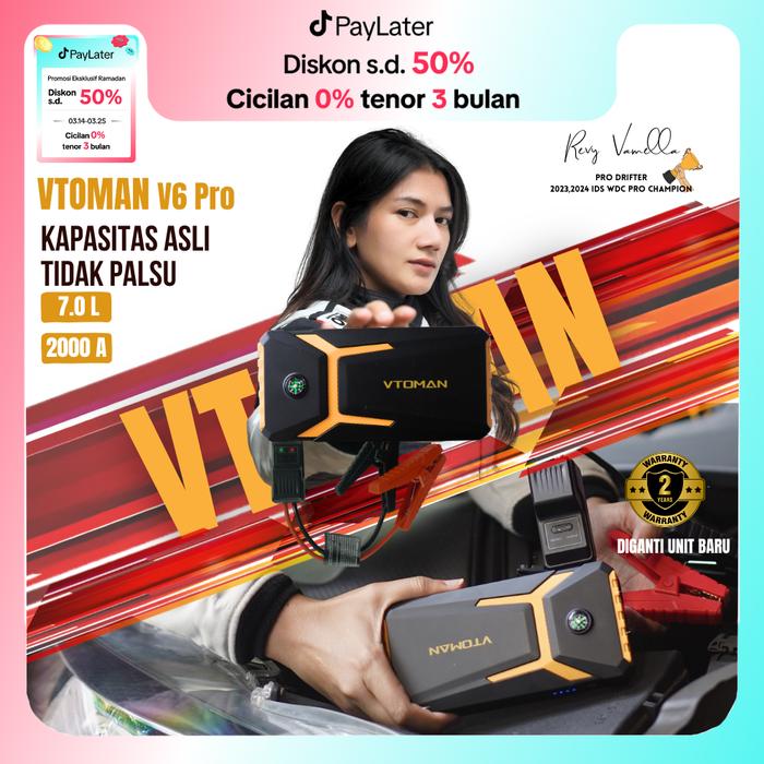 DP 0 (UPGRADE) VTOMAN V6 PRO JUMPER AKI MOBIL DAN MOTOR KAPASITAS 10000MAH JUMPER AKI KENDARAAN POWERBANK PORTABLE CAR JUMPER AKI POWERBANK JUMPER AKI UNTUK MOBIL