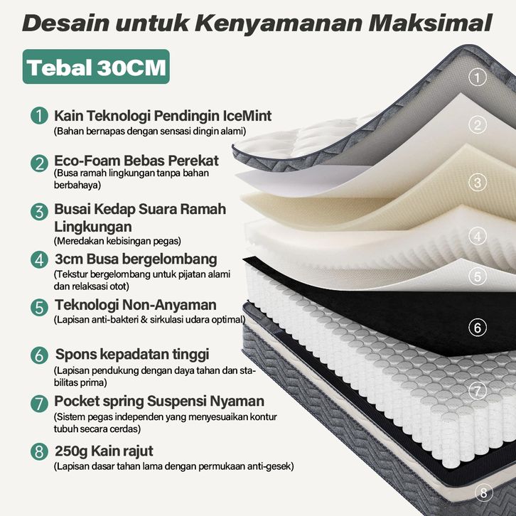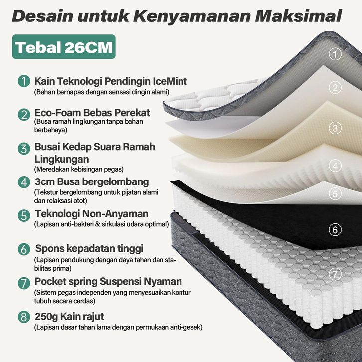 Kasur Springbed Kavara Kasur Busa Tebal 20 26 30cm Ukuran 90x200 120x200 160x200 180x200 Spring Bed No 1 2 3 4 Murah