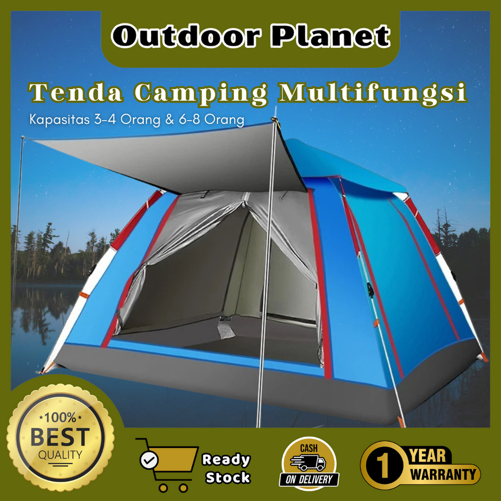 OUTDOOR Planet (GARANSI 1 TAHUN)Tenda Camping Kapasitas 4-6 Orang Tenda Gunung Outdoor dan Indoor Tenda Lipat Portabel Tenda Otomatis Tenda Dua Pintu dan Dua Jendela Tenda Camping Outdoor OP