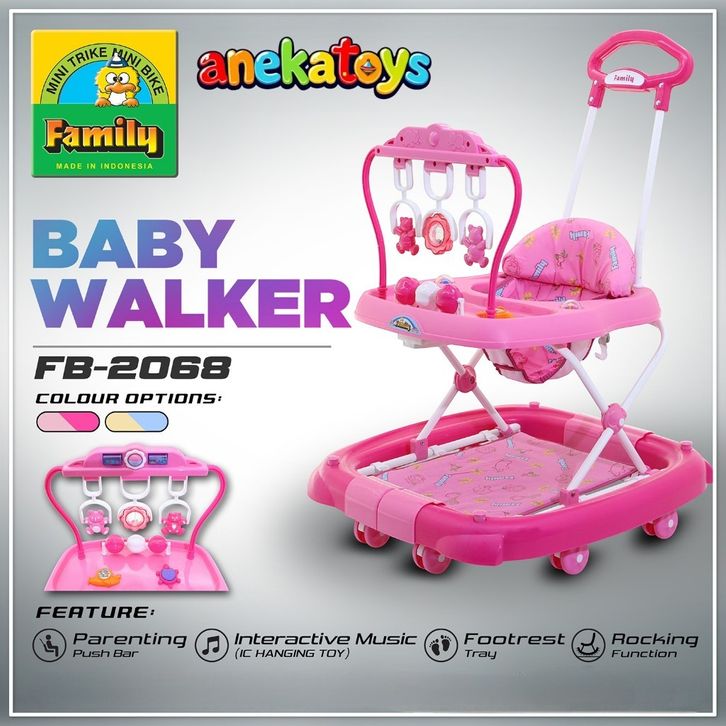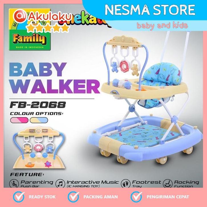 Baby Walker 3in1 Family FB2068 Mainan Gantung Roda 8 Dorong, Kudaan n Rem Pengaman / NESMA STORE / PERLENGKAPAN IBU BAYI