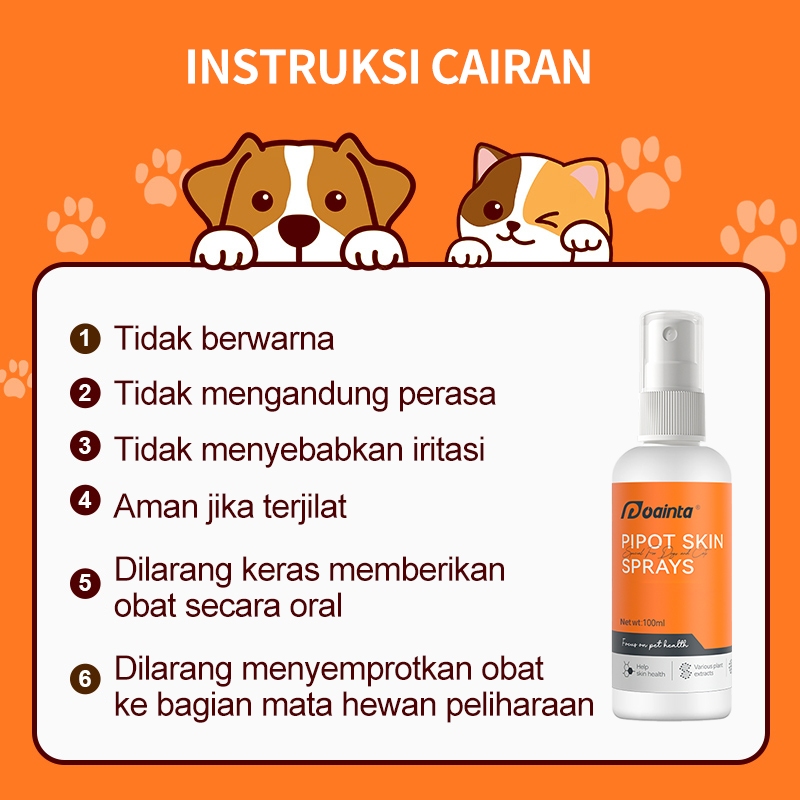 PUAINTA 50/100/150/200ml Pipot Obat Jamur Spray Semprot Kucing dan Anjing Anti Scabies, Jamur, Ringworm, Demodex, Impeti