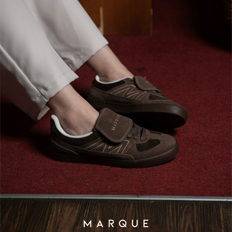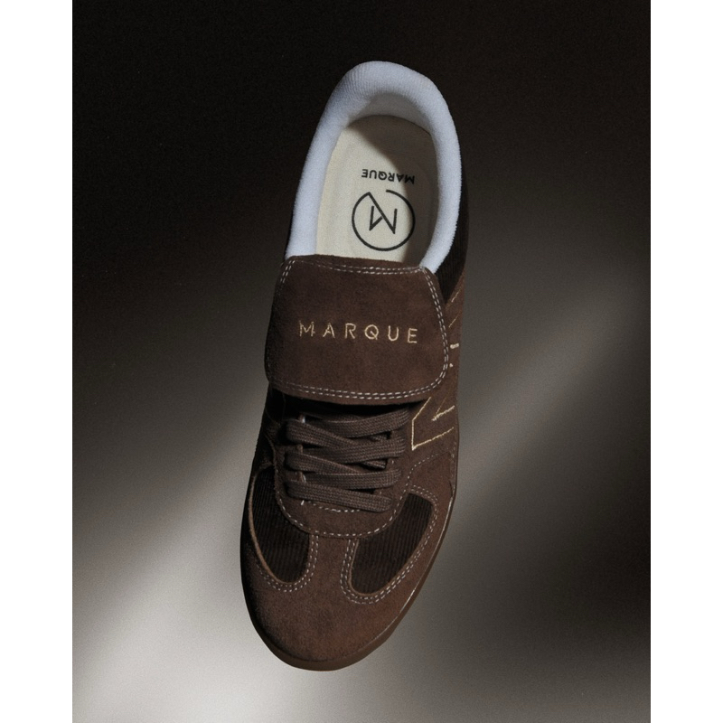 MARQUE.CO ‘PANSER Series’ Dark Brown Coklat Tua- Sepatu Sneakers Pria & Wanita Unisex dengan Bahan Suede & Corduroy, dengan Tounge Panjang Kasual dari MARQUE