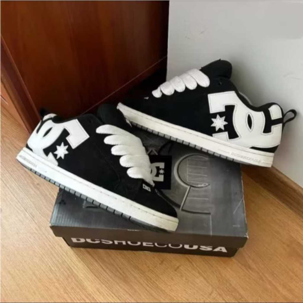 Sepatu Black White Dc Court Graffik BNIB berkualitas Sepatu Pria Wanita Unisex Sneakers Gemuk Model Terbar