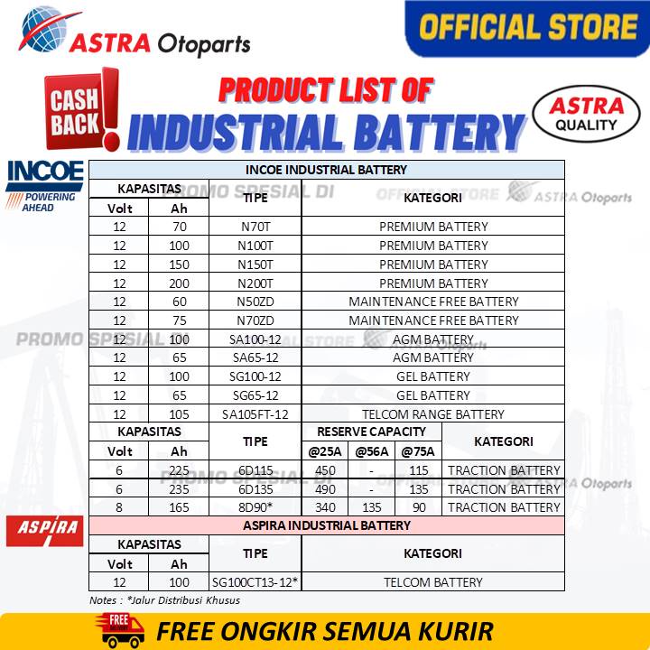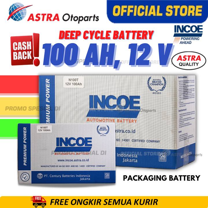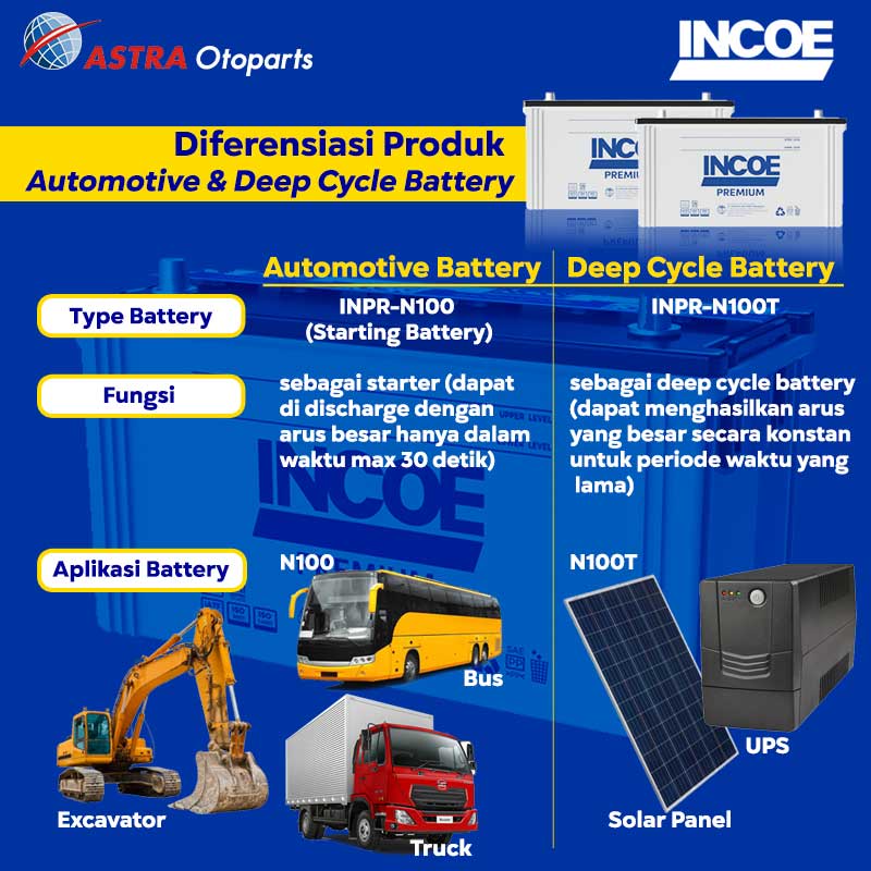 Baterai / Aki INCOE PREMIUM 100 Ah - 12 Volt, Deep Cycle Battery/Accu - untuk Solar Panel Off Grid (tenaga surya), Power Supply