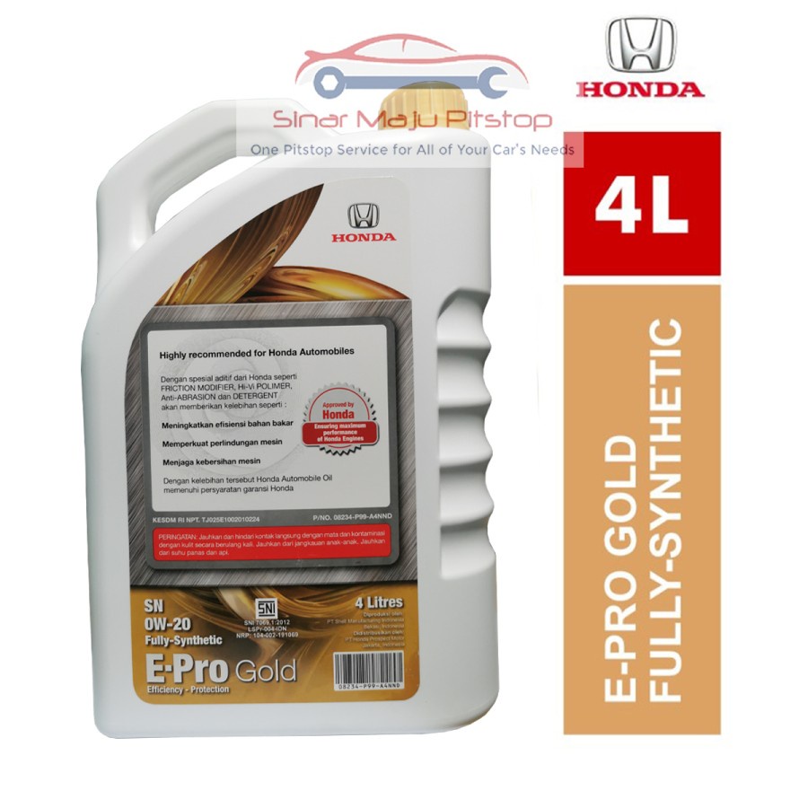 Pelumas Oli Mesin Mobil Bensin - HONDA AUTOMOBILE OIL E-PRO GOL& SAE 0W-20 SN FULL SYNTHETIC OIL 4 Liter Original
