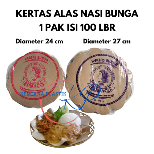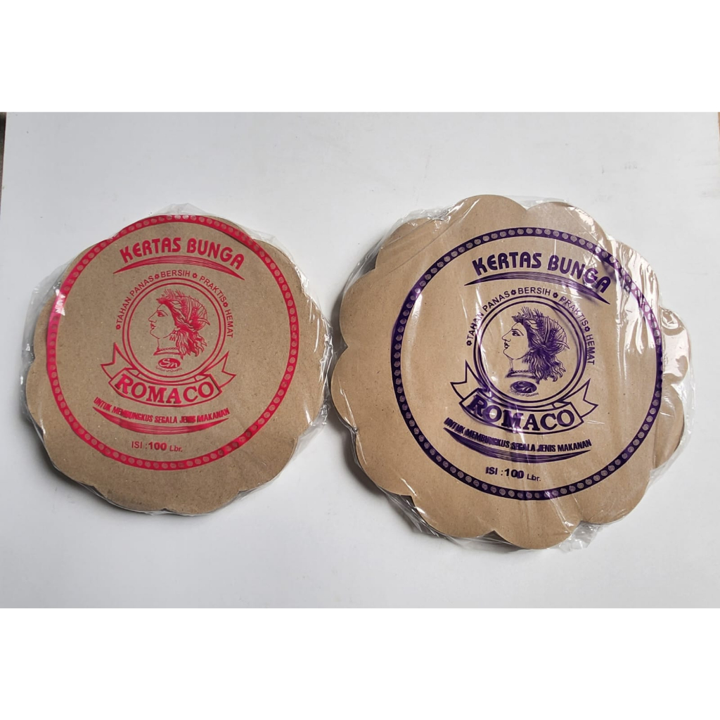 (FLASH SALE)Kertas Nasi Bunga Bulat Coklat Alas Piring Lidi Rotan Isi 100 Lembar
