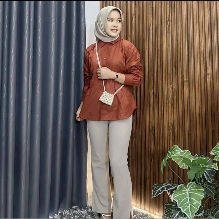 KEMEJA WANITA LUNA TOP LONGSLEEVE ATASAN WANITA KATUN POPLIN KEMEJA POLOS SLIMPIT TERBARU