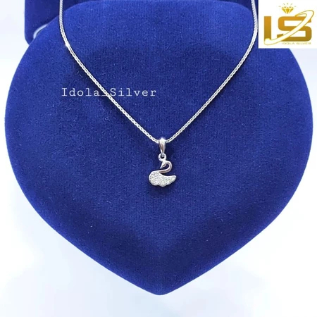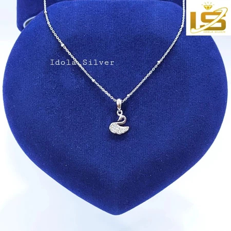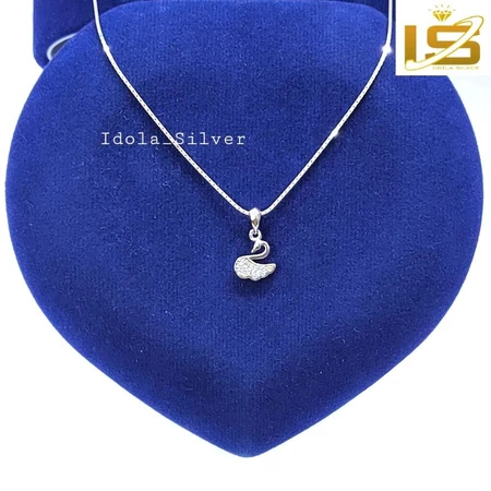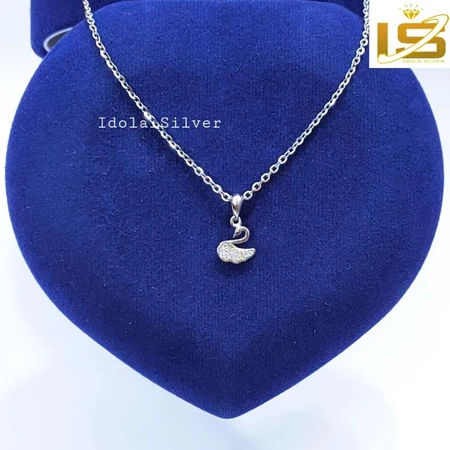 KALUNGG PERAK ASLI SILVER WANITA DEWASA 925 LAPIS EMS PUTIH DENGAN LONTIN ANGSA/SWAN - PERHIASAN PERAK WANITA