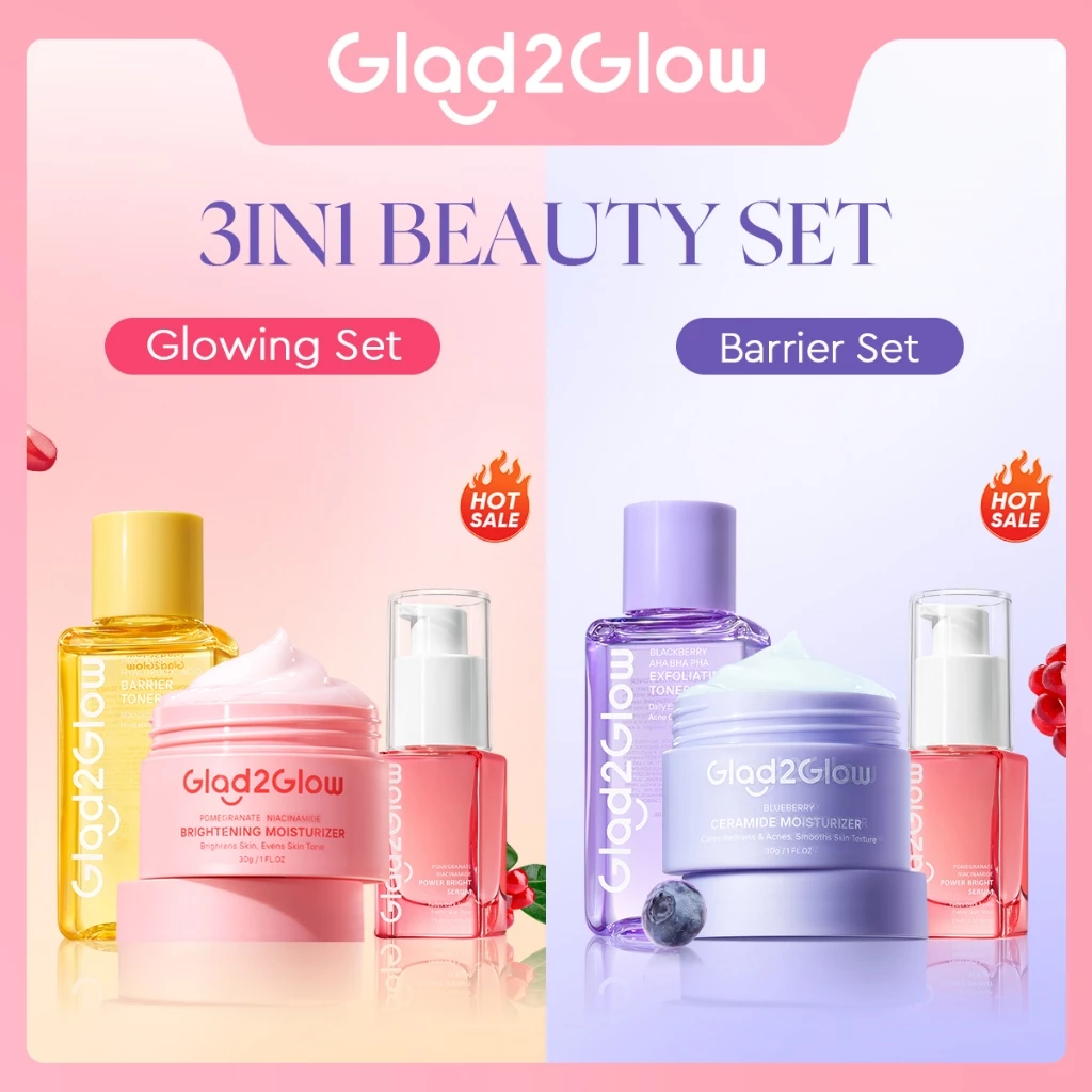 Glad2Glow 3pcs Paket Skincare Moisturizer Serum Face Wash | Glad 2 Glow Official Store
