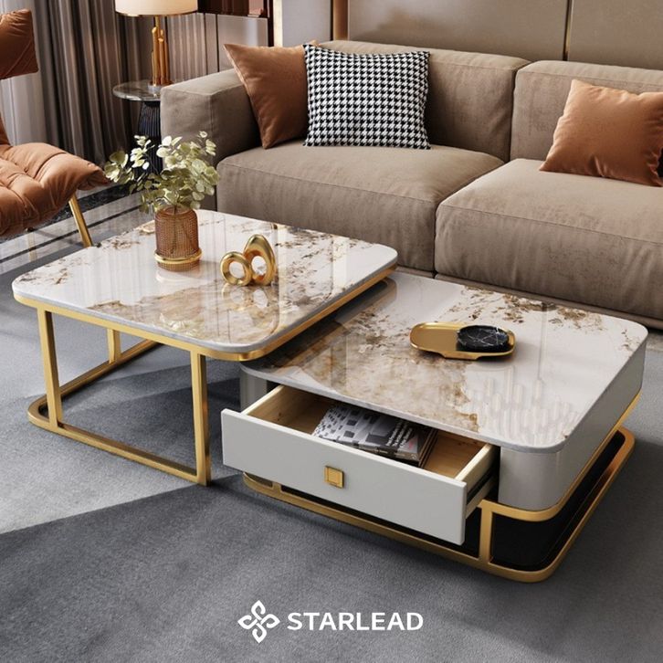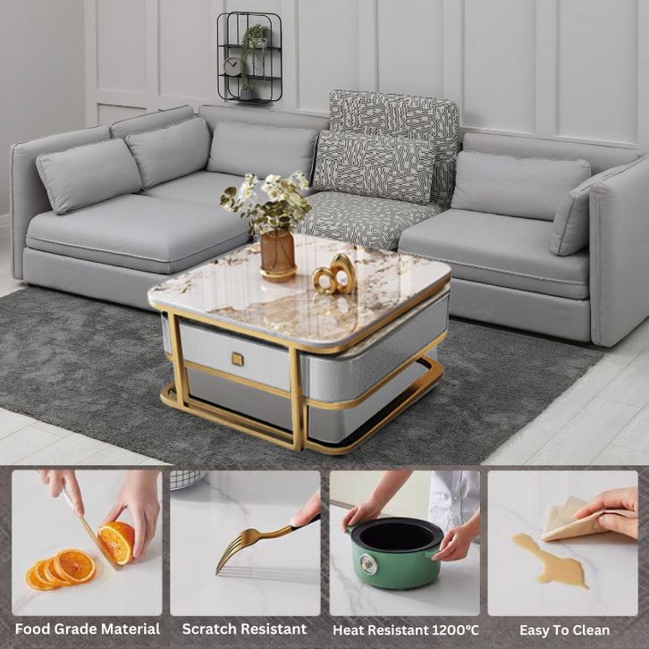 Meja Tamu Persegi 2 Tingkat Sintered Stone Pandora Grey