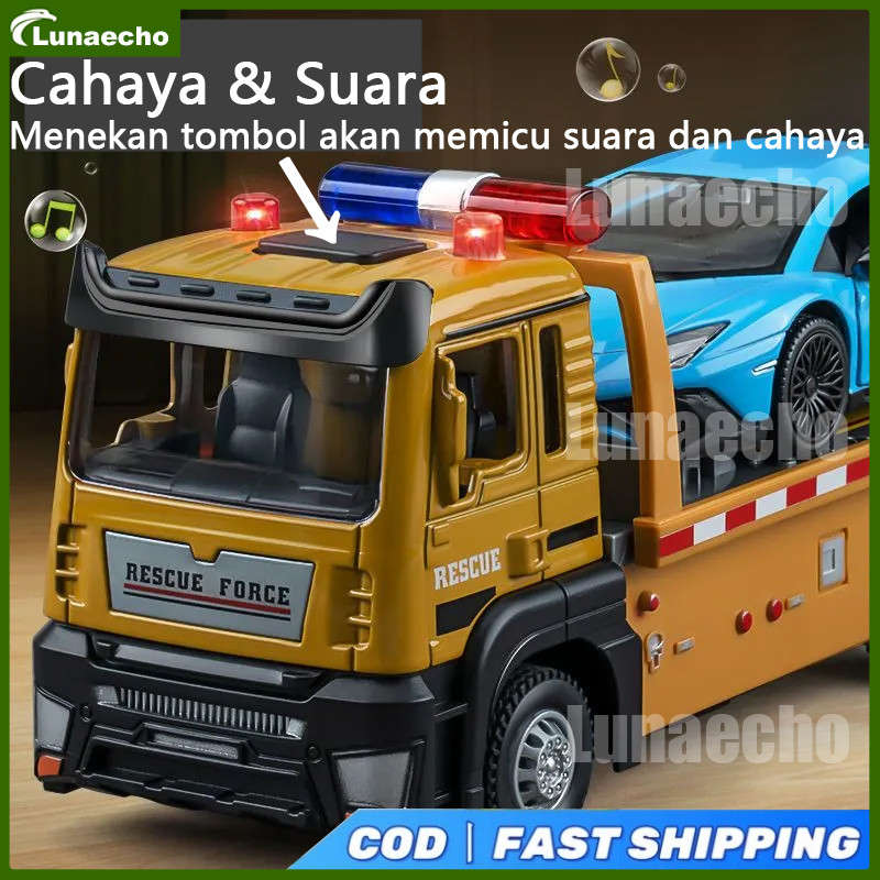 Truk Derek Ukuran 1:32 Truck Container Mainnan Miniatur Diecast Premium Mobil Towing Car