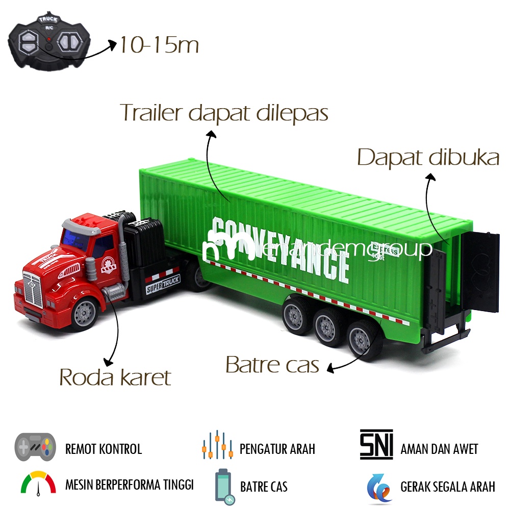 Mainan Mobil Remot Kontrol RC Truk Kontainer Trailer Angkut Barang