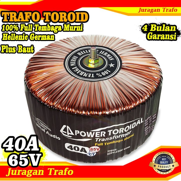 Trafo Toroid Powertoroidal 40A MURNI CT 65V 55V 45V 100% Full Tembaga Murni Hellenic German Kualitas Premium