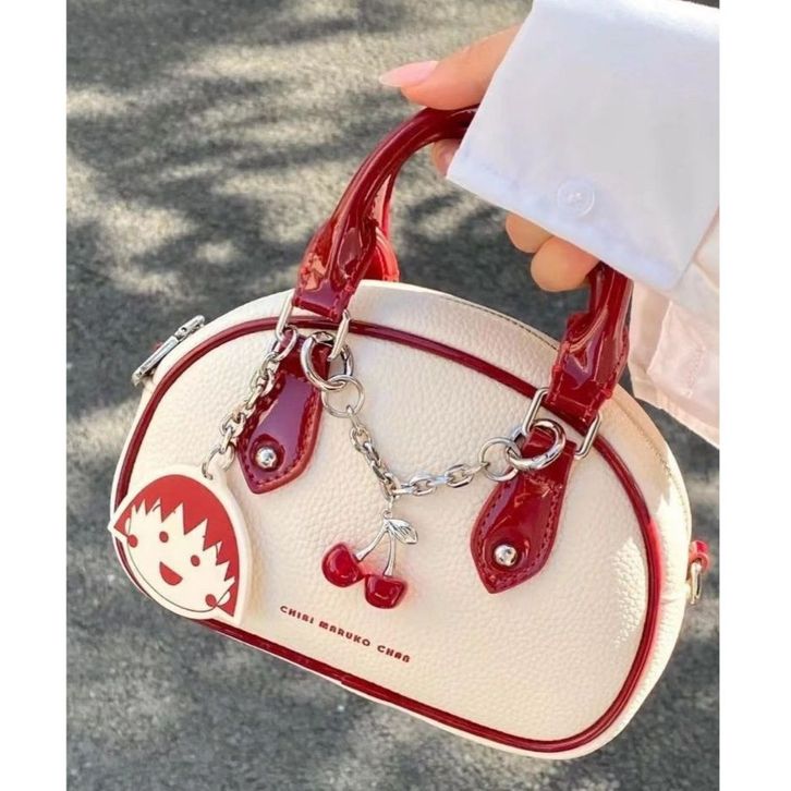 Tas Selempang Wanita Kulit Slingbag Cewek Bulat Cherry