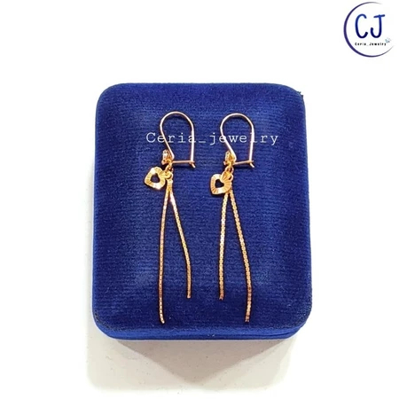 Antingg perak asli silver wanita 925 Lapis Ems Asli Rantai Itali Daubel Love Ukir - Antingg Anti Karat - Perhiasan Perak