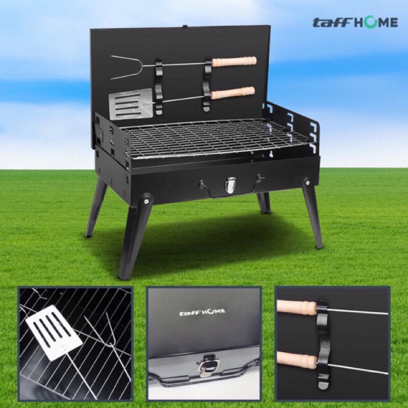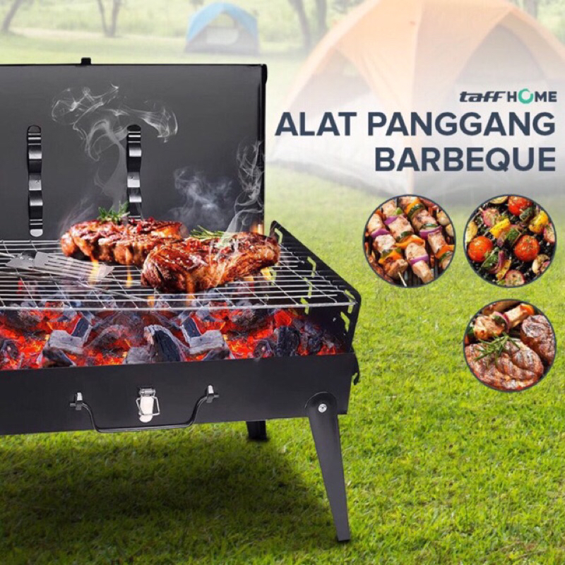 Alat Panggangan Arang BBQ Outdoor Grill HWSK77 Black Alat Barbeque Outdoor Panggang Sate Sosis Ikan Daging Idul adha