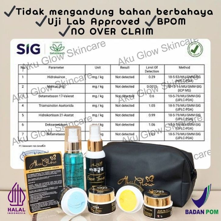 Akuglow Paket Skincare Cream Pemutih Wajah Glowing Pelicin Krim Whitening Korea Jepang Permanen
