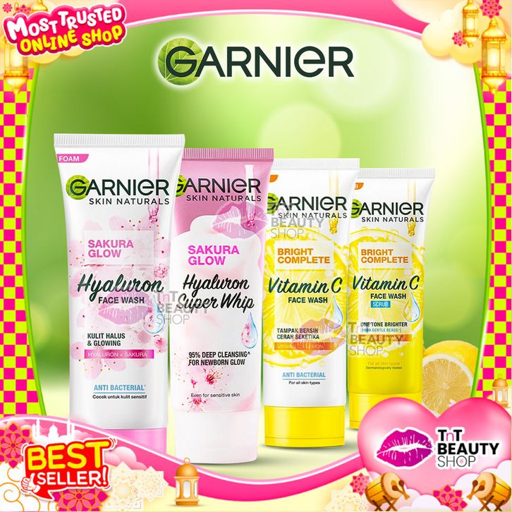 Garnier Brht Complete & Sakura Glow Hyaluron Face Wash 50ml Scrub TnT Beauty Shop