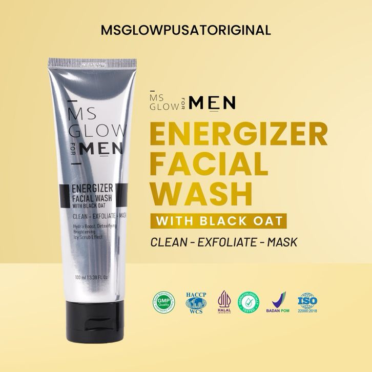 MS GLOW FOR MEN - ENERGIZER FACIAL WASH - 100 ML - ORINAL 100% BPOM