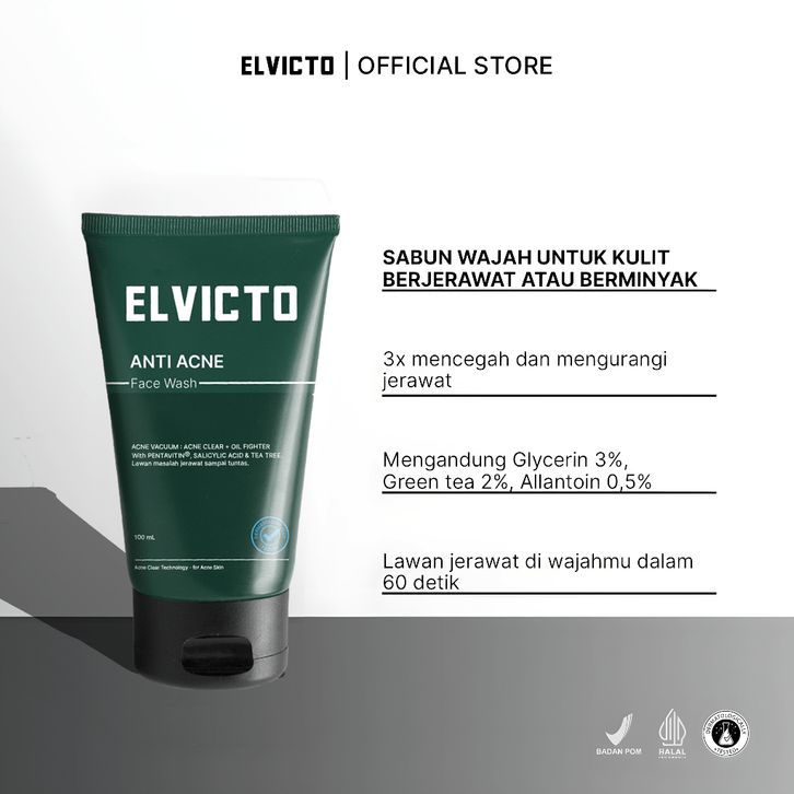 ELVICTO ANTI ACNE FACE WASH Facial Wash Pria untuk Kulit Berjerawat Sabun Wajah Pria Dengan Kulit