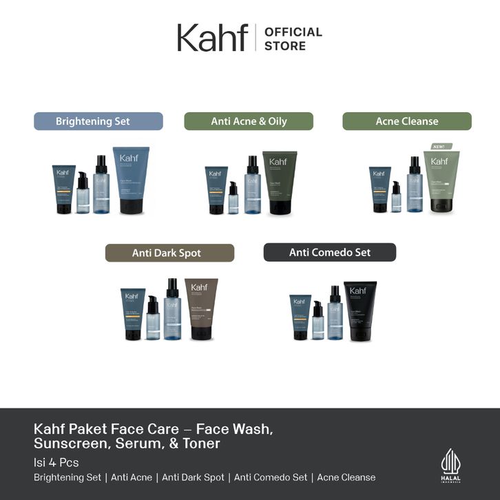 Kahf Paket Face Care Expert Complete Kit Isi 4 Face Wash + Toner + Serum + Sunscreen Moisturizer