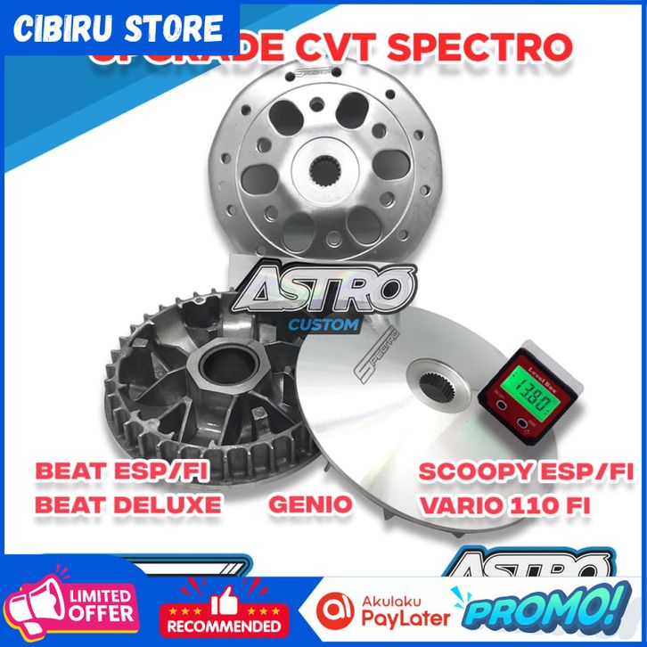 Paket Upgrade CVT Spectro BeaT Fi ESP Scoopy Fi ESP Genio Vario 110 fi Mangkok Kopling Pulley Rumah Roller AstroCustom