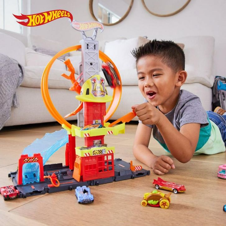Hot Wheels City Super Loop Fire Station Playset - Mainan Trek Mobil Balap