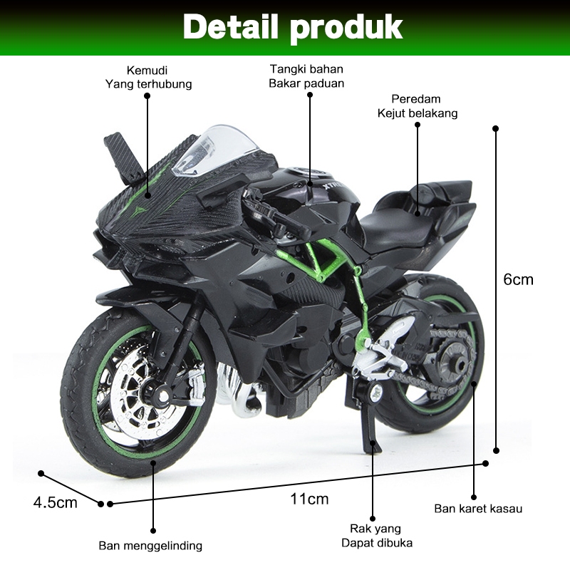 Kawasaki H2R Toy Bike 1:18 Miniatur Diecast Motor Kawasaki H2R Emulasi Pemodelan / Motor Mainan Anak Miniatur