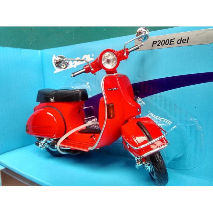 Miniatur motor Honda PCX 150 putih mainan koleksi skala 18 Diecast Vespa P200E Del Miniatur motor Vespa klasik jadul har
