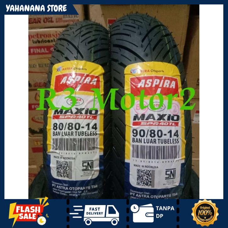 PAKET BAN TUBELESS ASPIRA 80 80 14 dan 90 80 14 MAXIO SPR40 SPR 40 kembang HONDA untuk matic gratis pentil