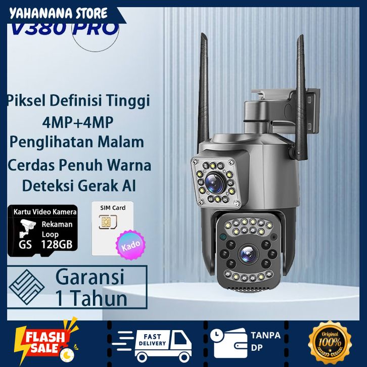 V380 Pro CCTV WiFi 4K 8MP 4G SIM Kamera PTZ IP66 Tahan Air Outdoor Lensa Ganda di Luar Ruangan